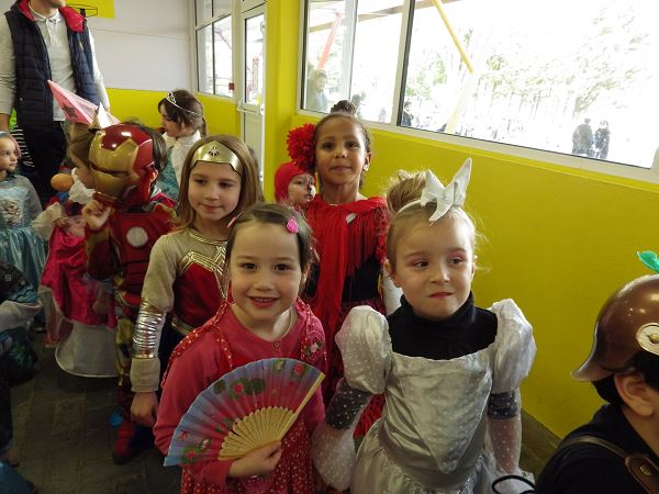 Cet après-midi, les élèves ont fêté carnaval à l’école. Tout le monde était déguisé pour l’occasion : princesses, super-héros, pirates, et bien d’autres personnages étaient au rendez-vous ! Les élèves ont défilé en musique devant de nombreux parents venus pour l’occasion. La journée s’est terminée par des ventes de brioches, de bonbons et plusieurs stands…