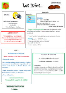 les informations à retenir pour le mois d’octobre à l’école