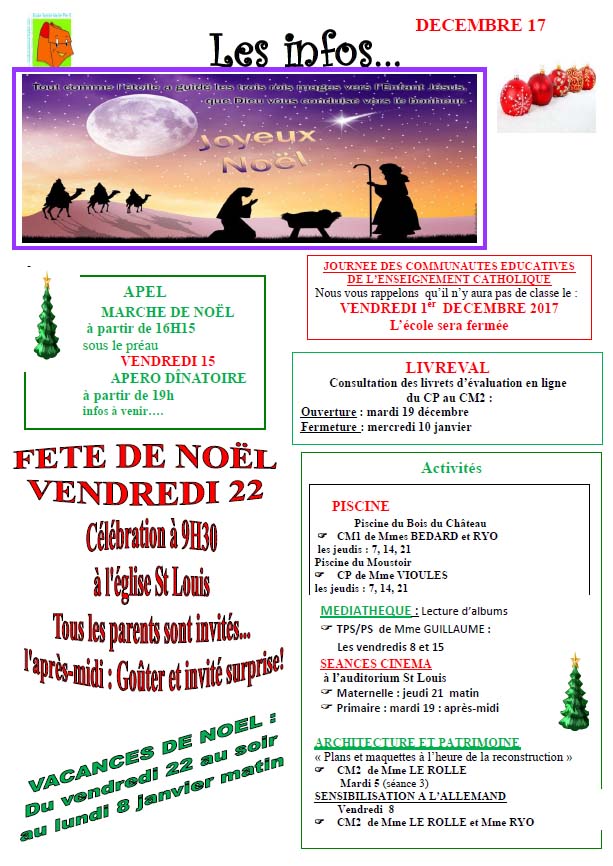 APEL : Le marché de Noel se déroulera le 15 décembre avec un apero dinatoire a partir de 19h00
