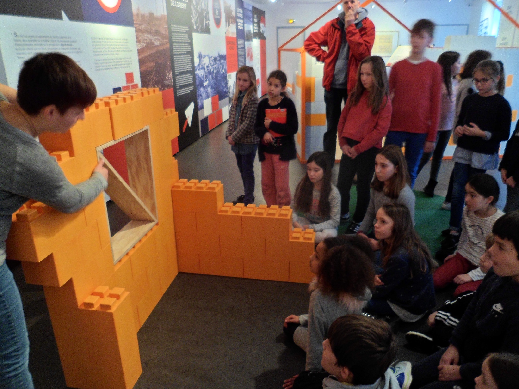 Ils ont ensuite pu expérimenter la construction d’un mur, en manipulant des blocs pour comprendre le principe constructif (matériaux, techniques, outils, organisation du chantier…).