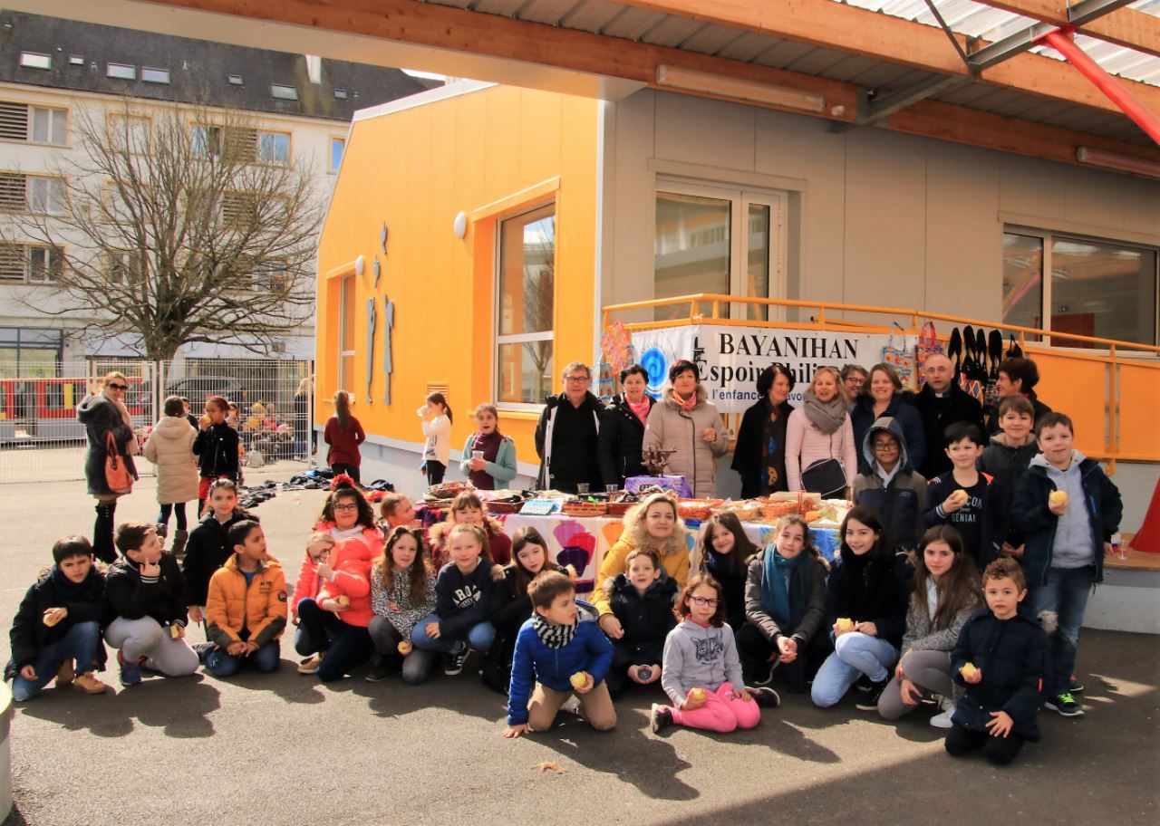 Lundi 26 mars dernier , élèves, équipe éducative, paroisse, parents et amis de l’école ont partagé un sandwich sur la cour . Cette action caritative est au profit de l’association « Bayahinan Espoir Philippines » qui aide l’enfance défavorisée.