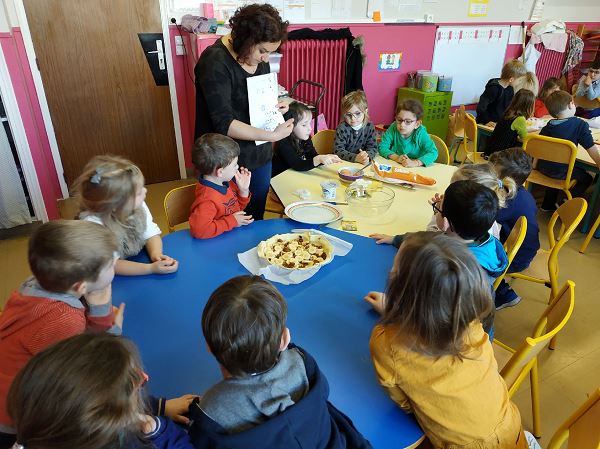 Les élèves de MS ont débuté la période sur l’Afrique en élaborant une recette de tarte africaine à base de bananes et de dattes. Chaque élève a mis la main à la pâte et était fier de goûter son travail.