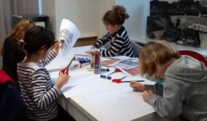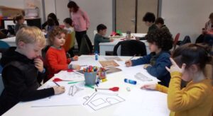 Un atelier de création de maisons en collage et dessin à l’Hôtel Gabriel.