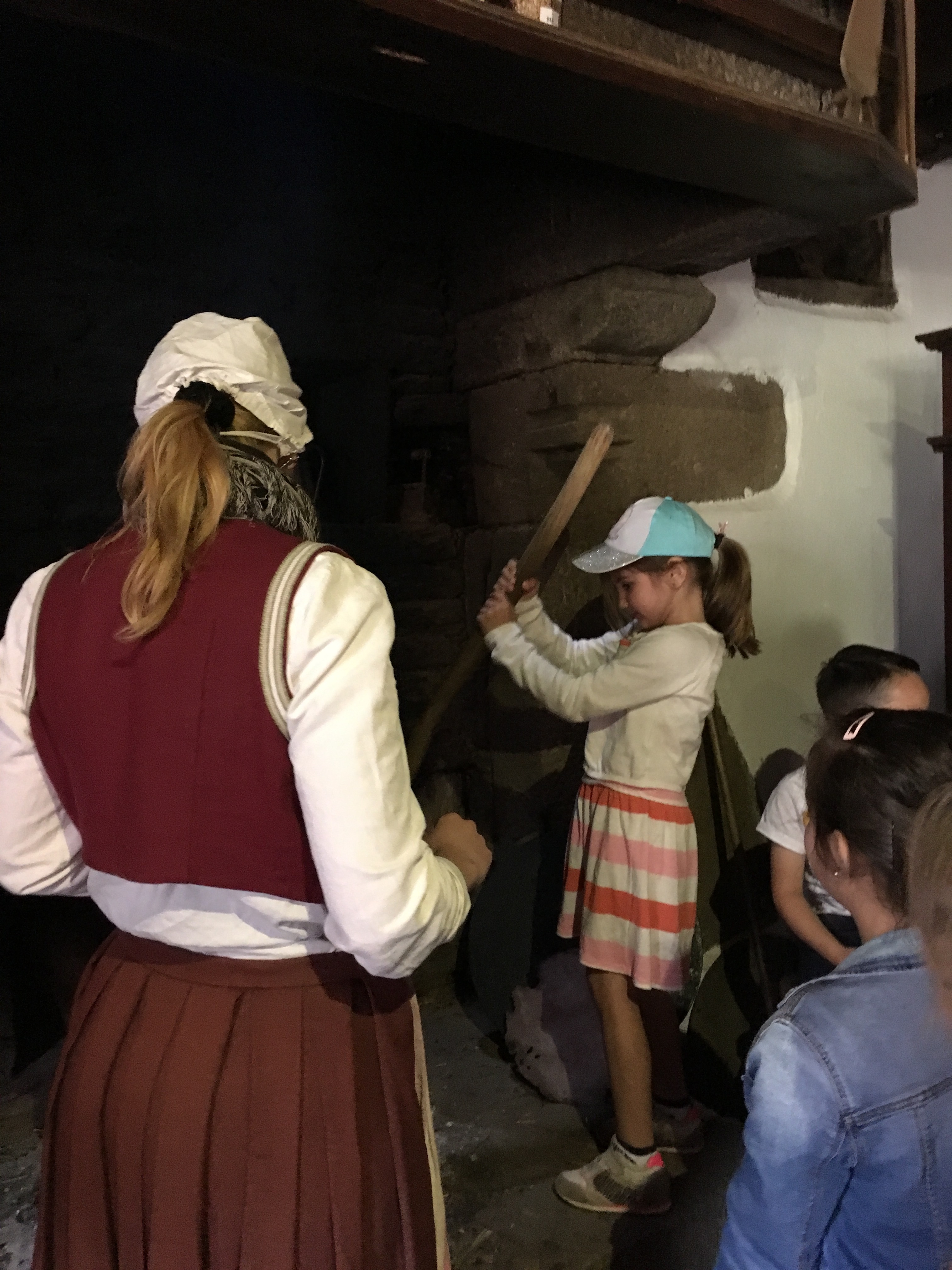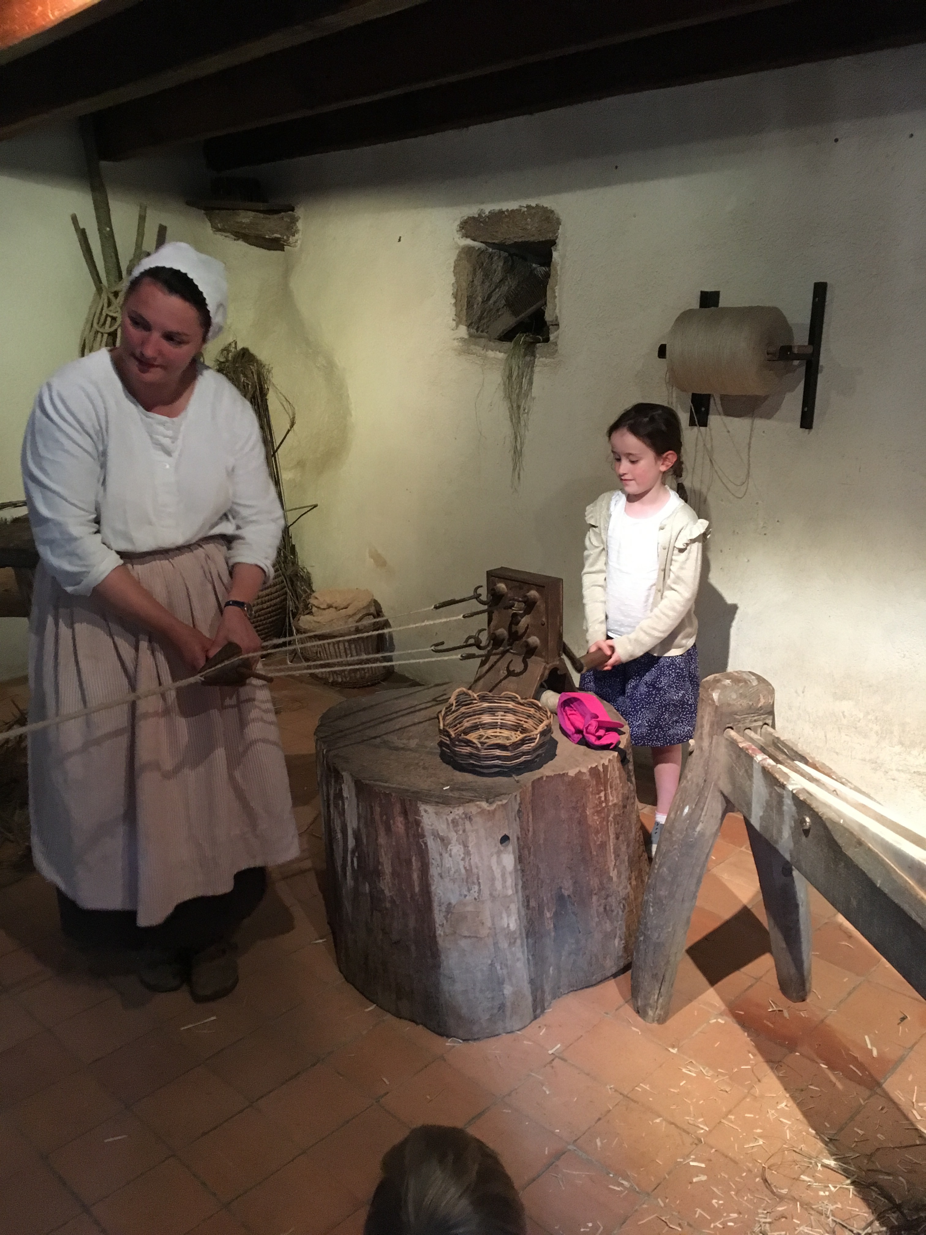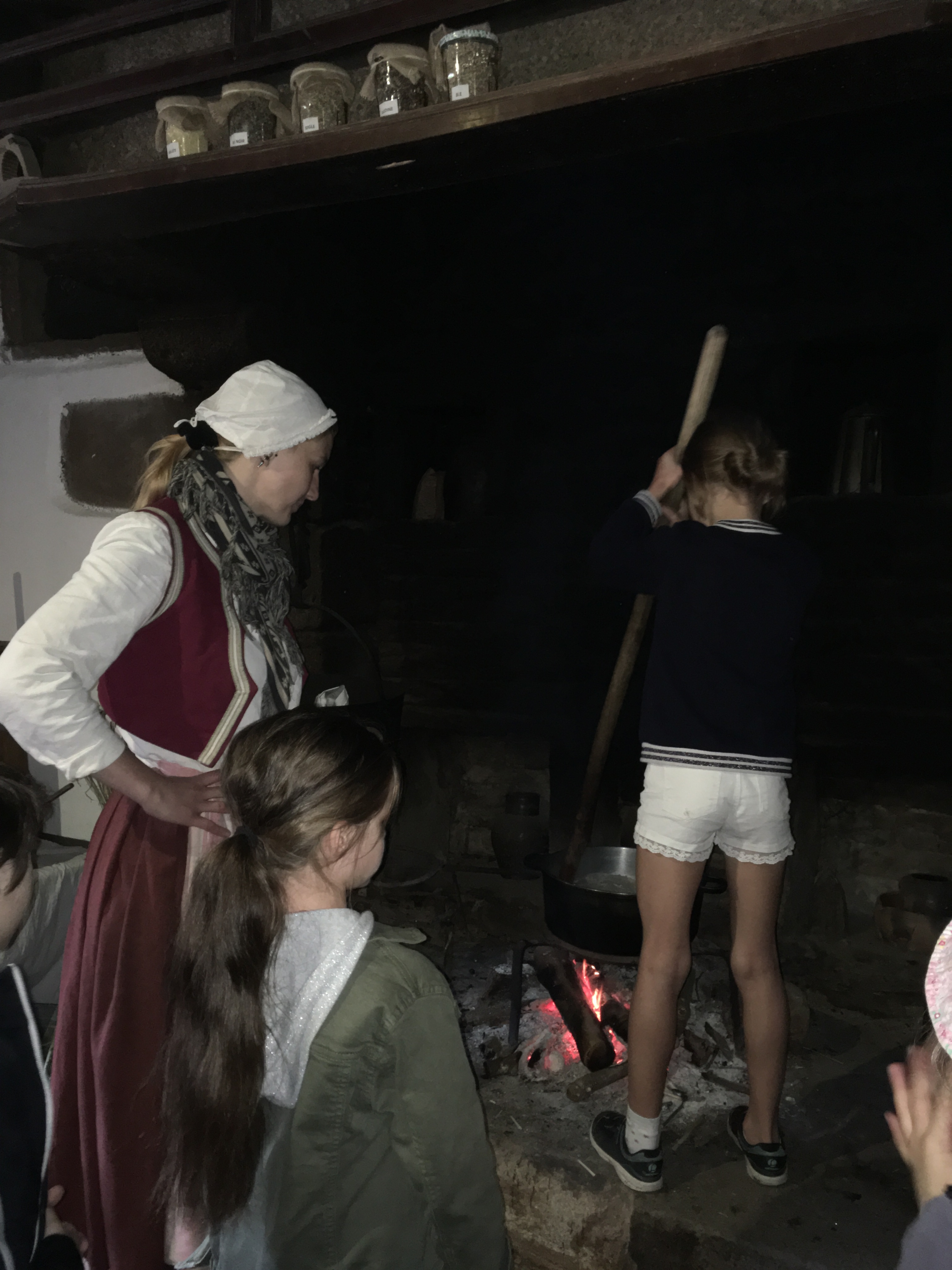 Ensuite après un bon pique-nique, la classe est allée se distraire aux jeux bretons, puis découvrir comment une corde de chanvre est faite et enfin nous avons avons gouté des crêpes de blé noir ainsi que de la bouillie de millet.