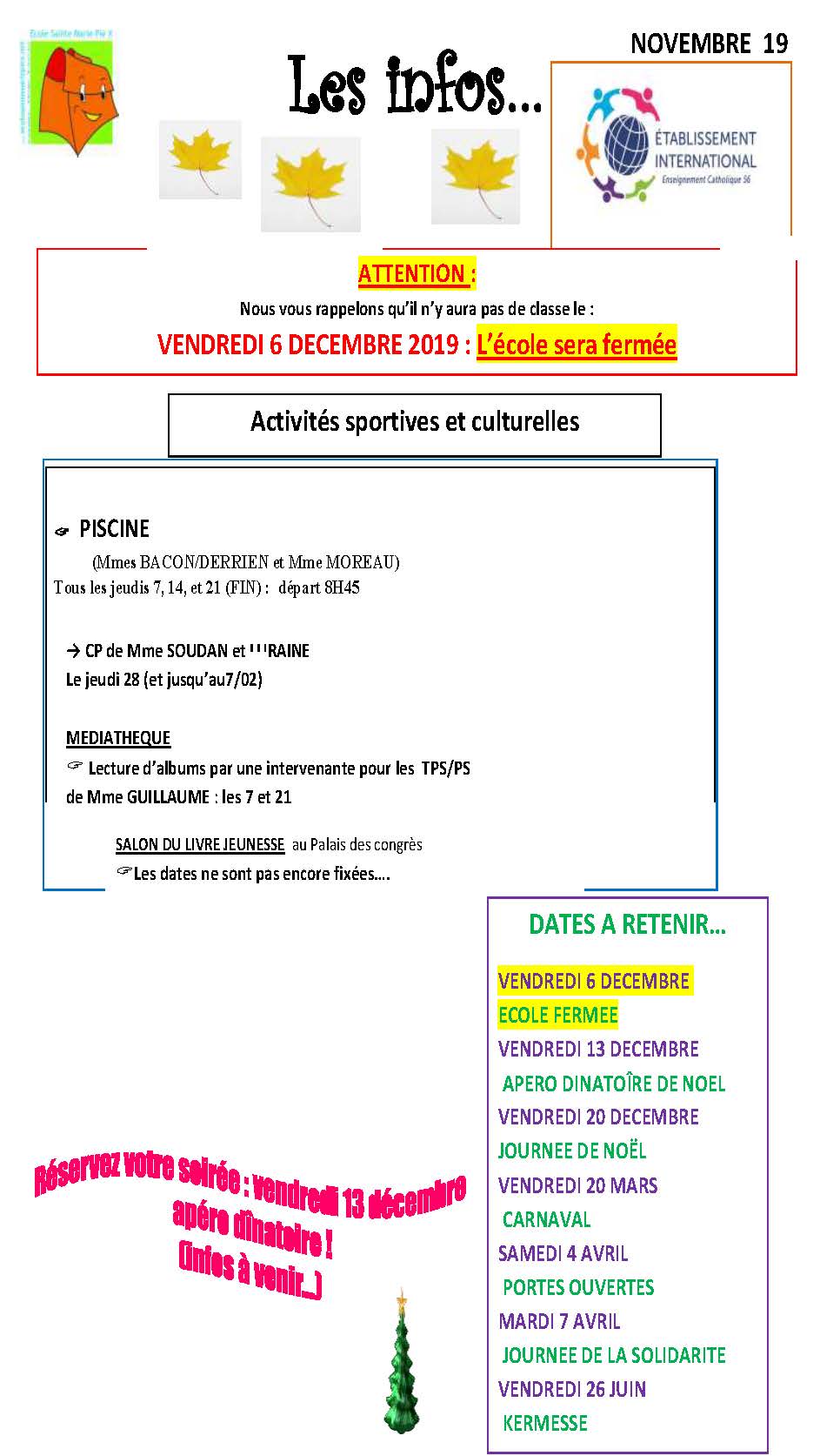 Attention Vendredi 6 decembre, l’école sera fermée.