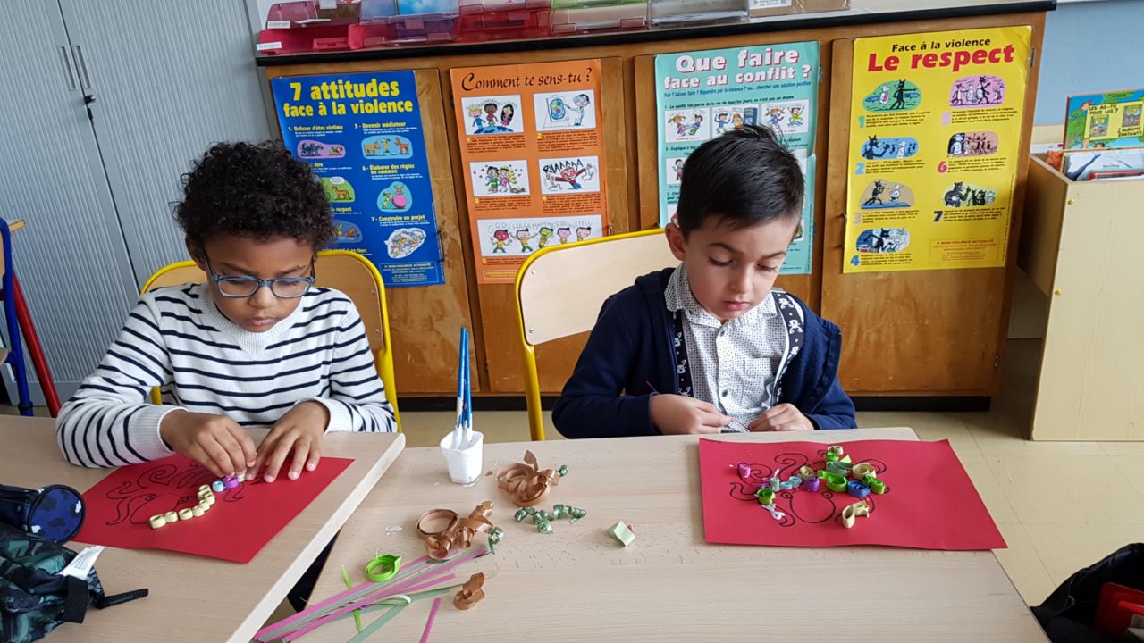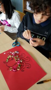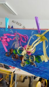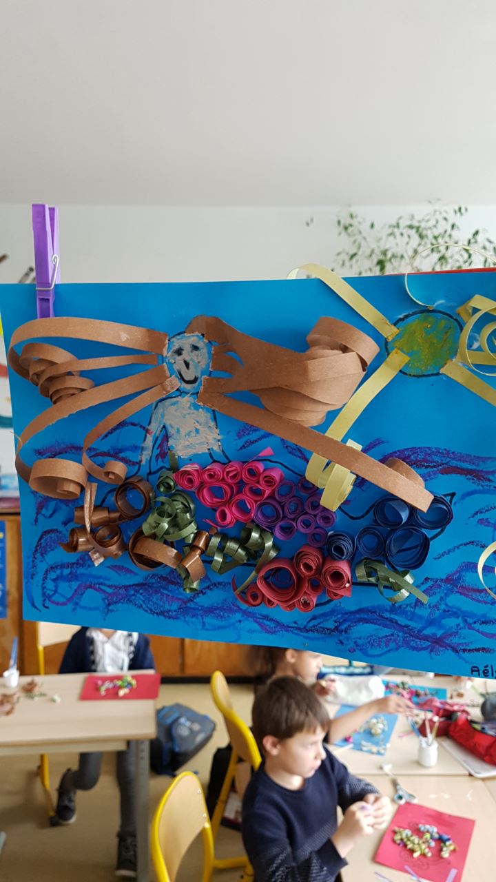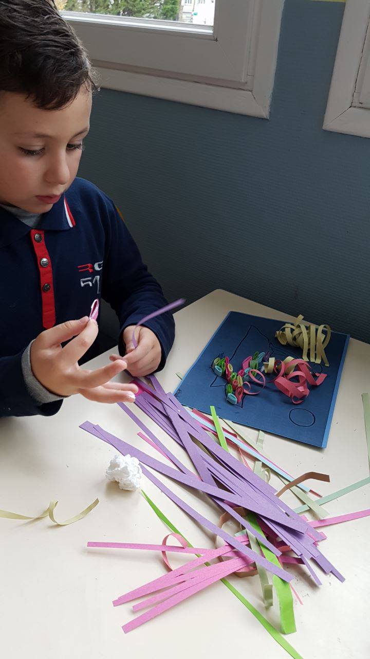 Des ciseaux, de la colle, des pastels secs et des bouclettes ! un peu d’habileté et de concentration….