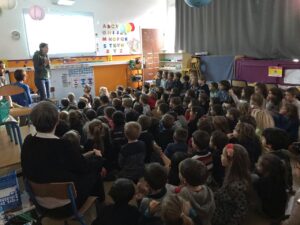 Les cinq classes de notre école se sont réunies afin de regarder le travail posté par les élèves étrangers. L’occasion aussi de recevoir les cartes de Noël.