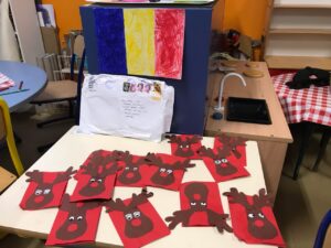 Nous avons échangé des dessins, des enregistrements vocaux en anglais pour nous présenter. Chaque classe a choisi une chanson de Noël dans sa langue maternelle et a envoyé des cartes dans les classes des correspondants.