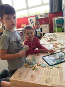 Qui aura la fève ? Mardi dernier, les élèves des classes de Mme Kerisac (PS-MS) et de Mme Luraine (MS) ont préparé la galette des rois.L’après-midi, ils se sont retrouvés pour la déguster après avoir chanté des chansons apprises pour célébrer l’Épiphanie. Ce beau moment de partage s’est achevé dans la bonne humeur, les enfants…