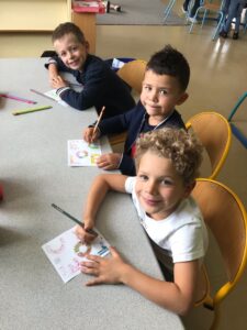 Retour en images sur les premières semaines en grande section : jour de rentrée , découverte de la classe et des copains , première séance d’anglais , bénédiction des cartables etc..