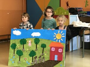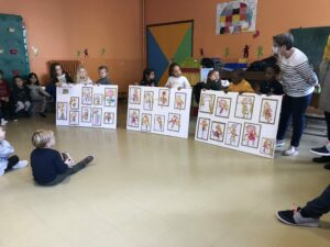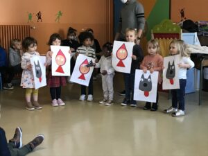 Jeudi , toutes les classes de maternelles se sont réunies pour présenter leur travail autour des contes : Boucle d’or , Hansel et Gretel , le Petit chaperon rouge , le Loup qui explorait le pays des contes …