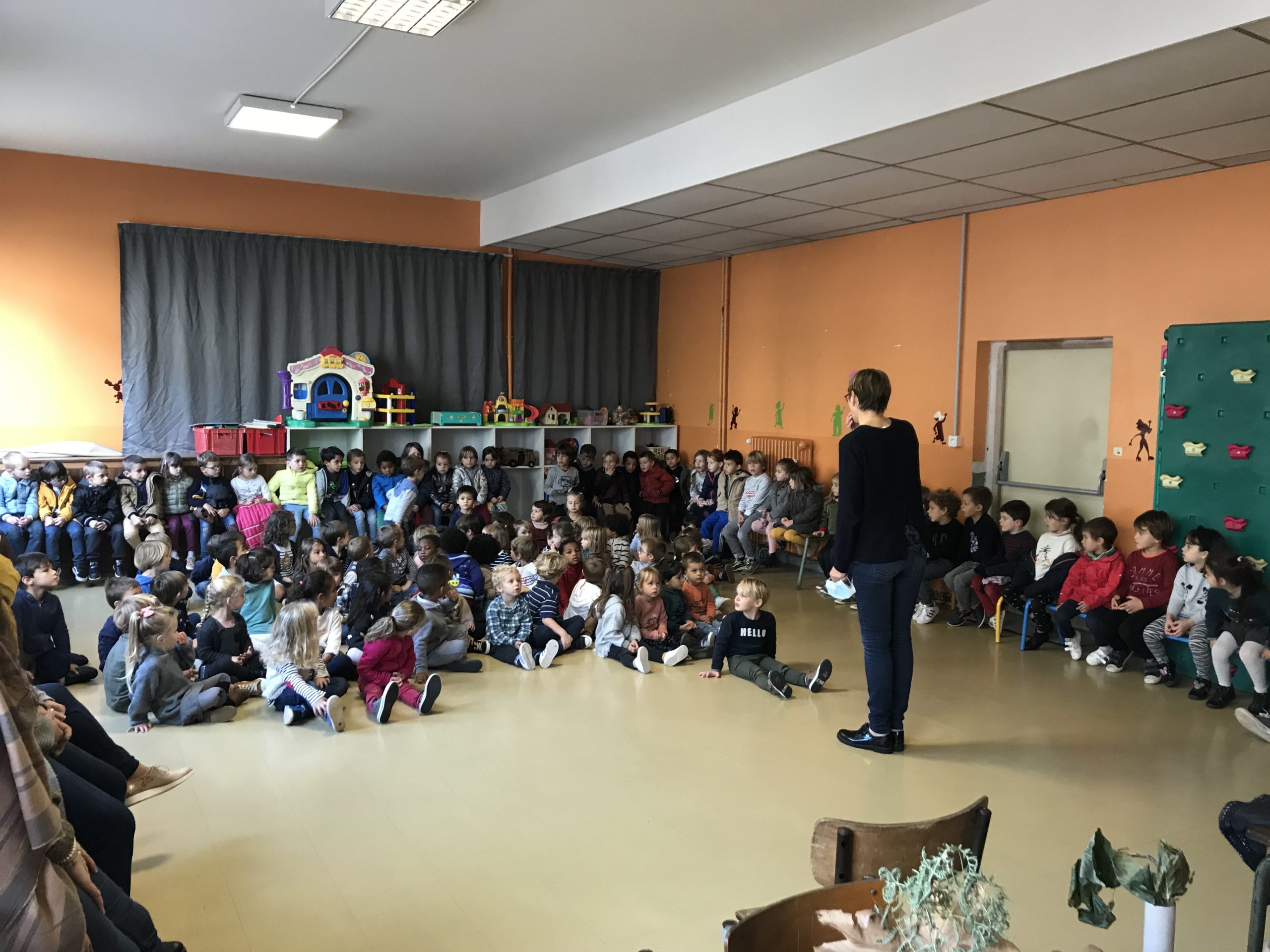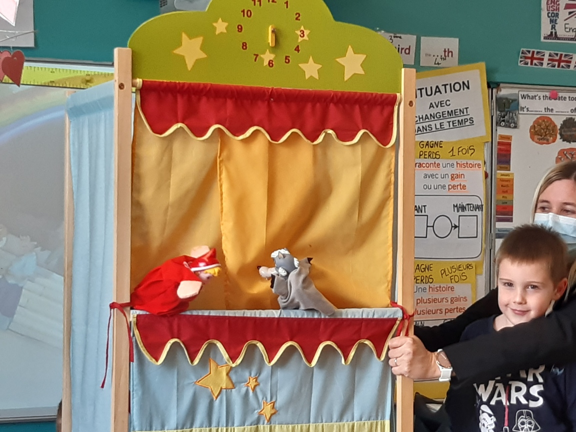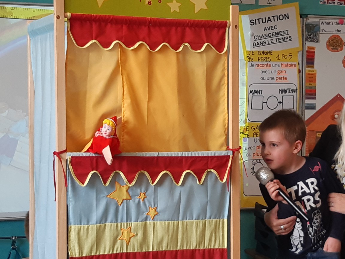 Jeudi , toutes les classes de maternelles se sont réunies pour présenter leur travail autour des contes : Boucle d’or , Hansel et Gretel , le Petit chaperon rouge , le Loup qui explorait le pays des contes …