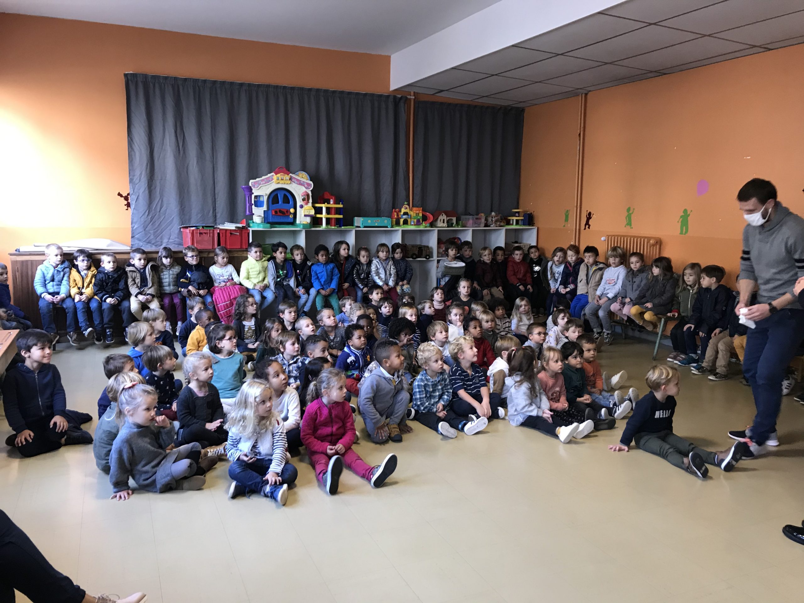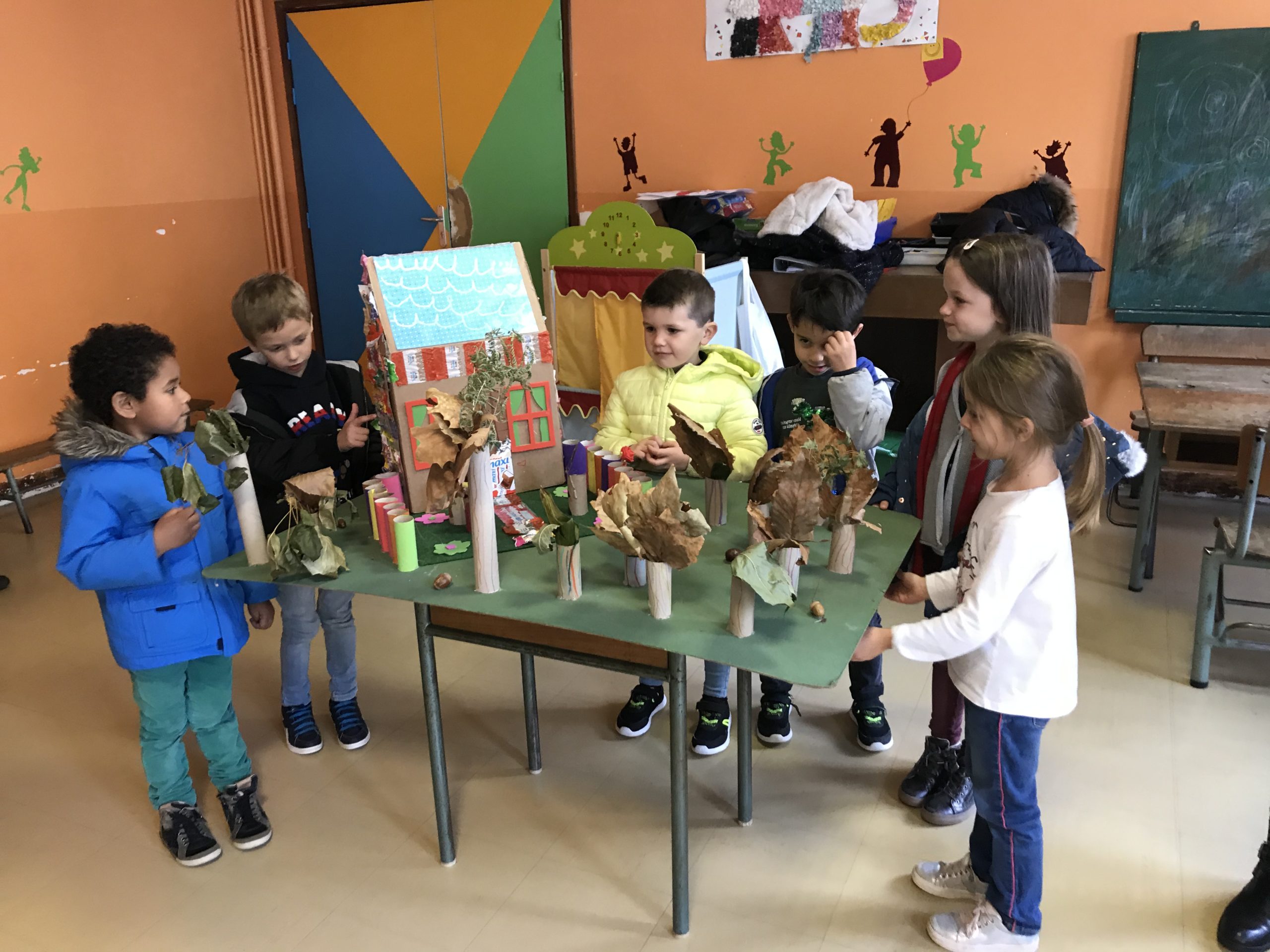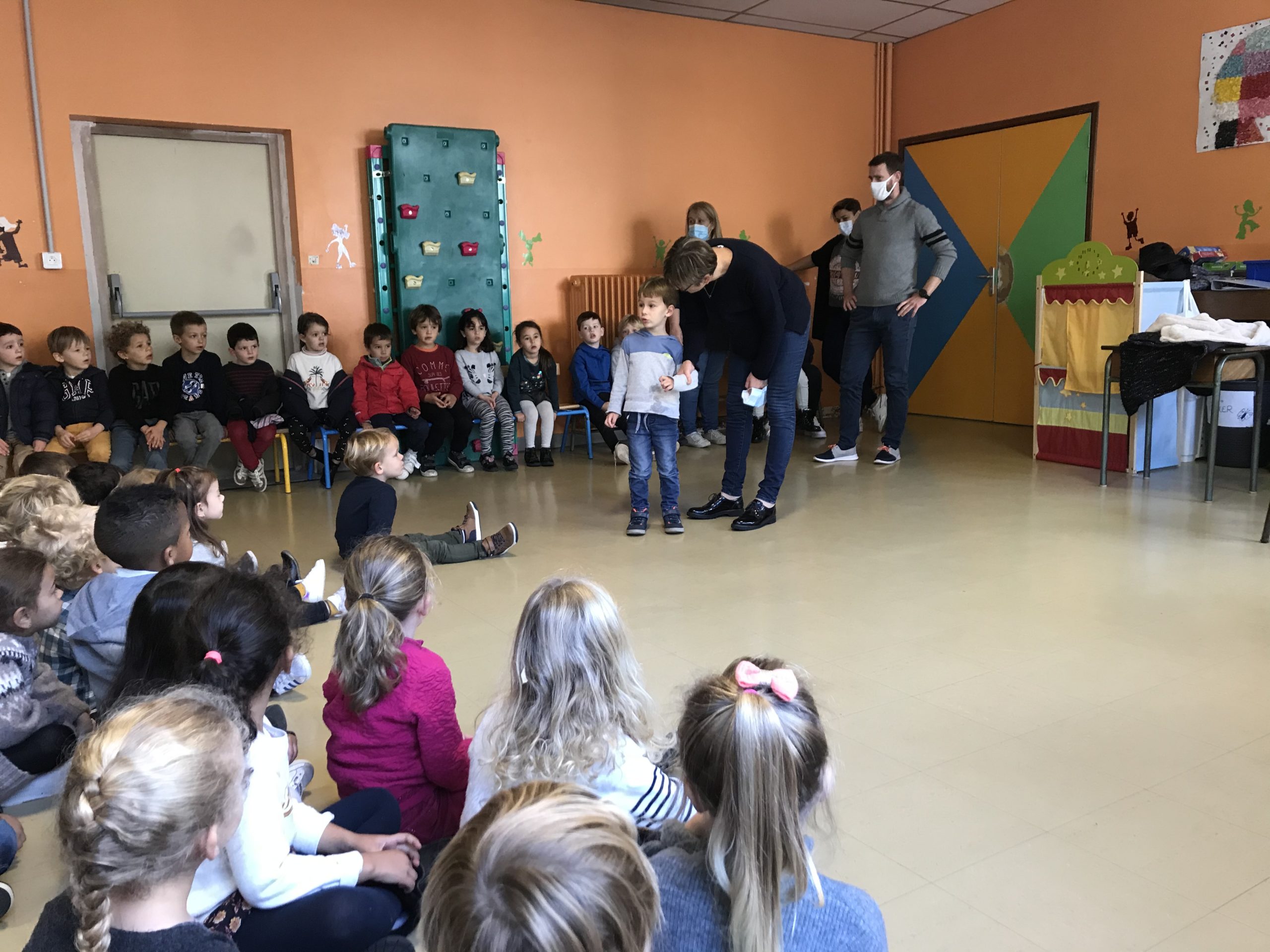 Jeudi , toutes les classes de maternelles se sont réunies pour présenter leur travail autour des contes : Boucle d’or , Hansel et Gretel , le Petit chaperon rouge , le Loup qui explorait le pays des contes …