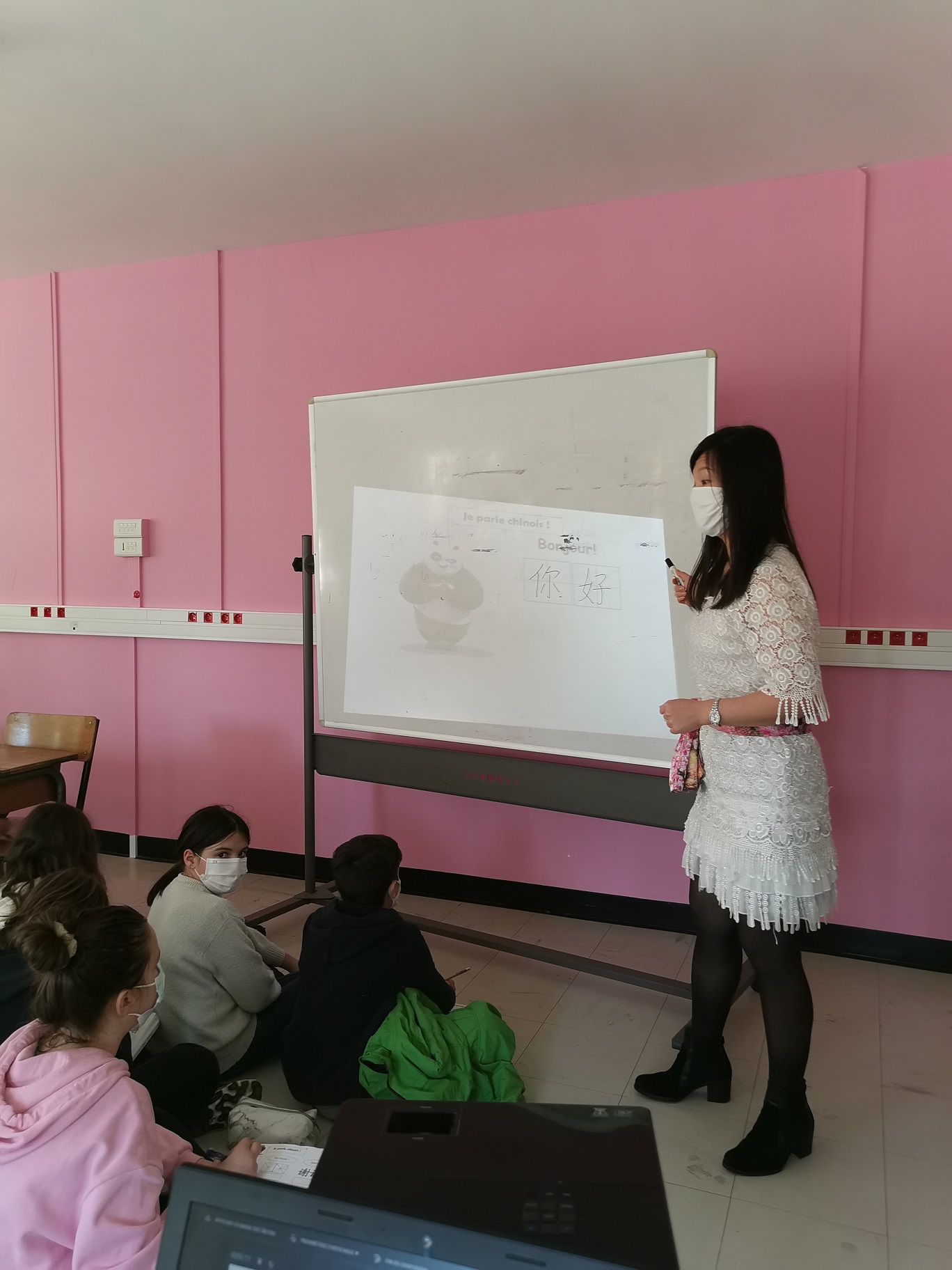 Elle nous a appris à prononcer et à écrire quelques mots en chinois. C’était assez difficile mais amusant ! Nous avons terminé par une petite chanson (sur l’air de Frère Jacques) en chinois.