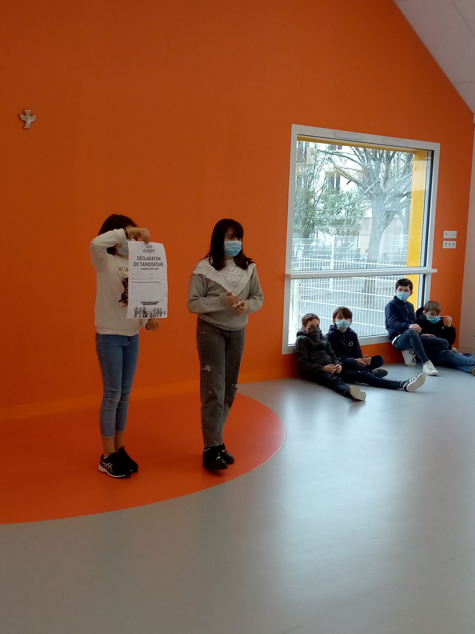 Les candidats se sont présentés devant les 3 classes : ils ont exposé leurs idées et leurs motivations. C’était un exercice impressionnant pour les candidats ! Ils ont énoncé leur slogan pour tenter de convaincre de voter pour eux.
