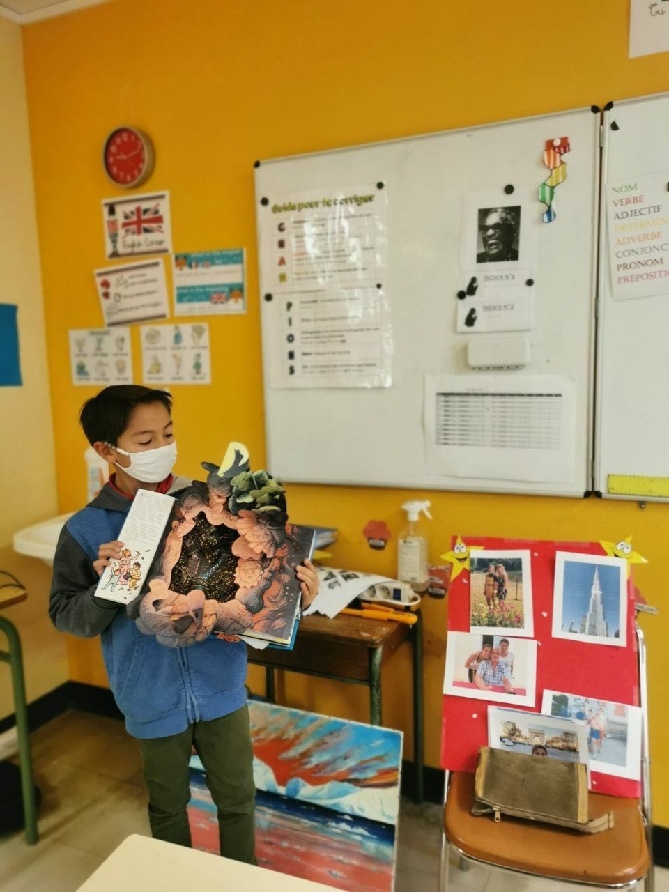 Le jeudi matin, la journée commence par ce rituel en anglais. A l’aide d’une trame étudiée en début d’année, l’élève se présente, nous parle de sa famille, de ses goûts, de ses activités; le tout en anglais of course !