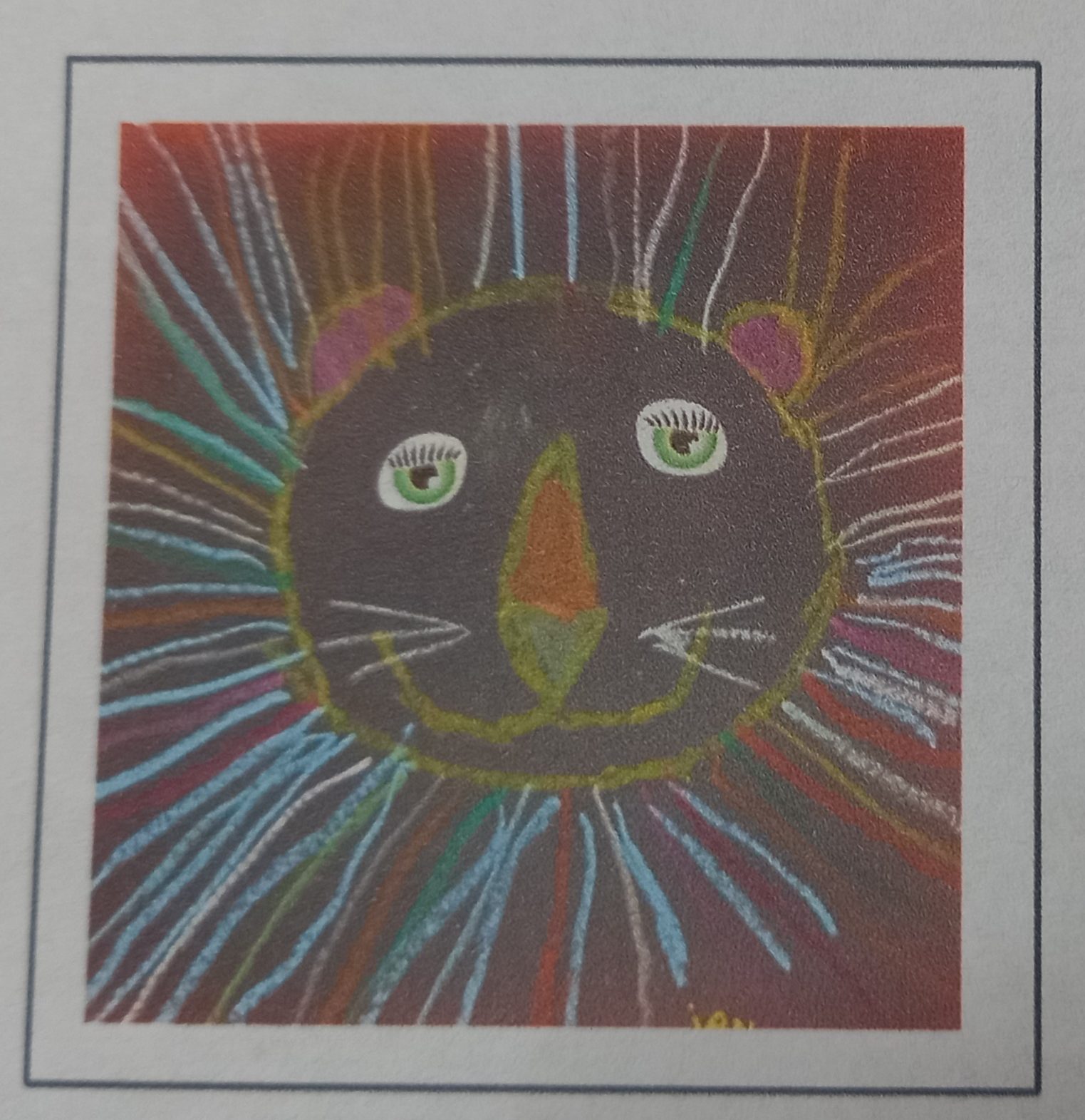 Le lion : chacun a dessiné une tête de lion (étape par étape) en utilisant des crayons pastels