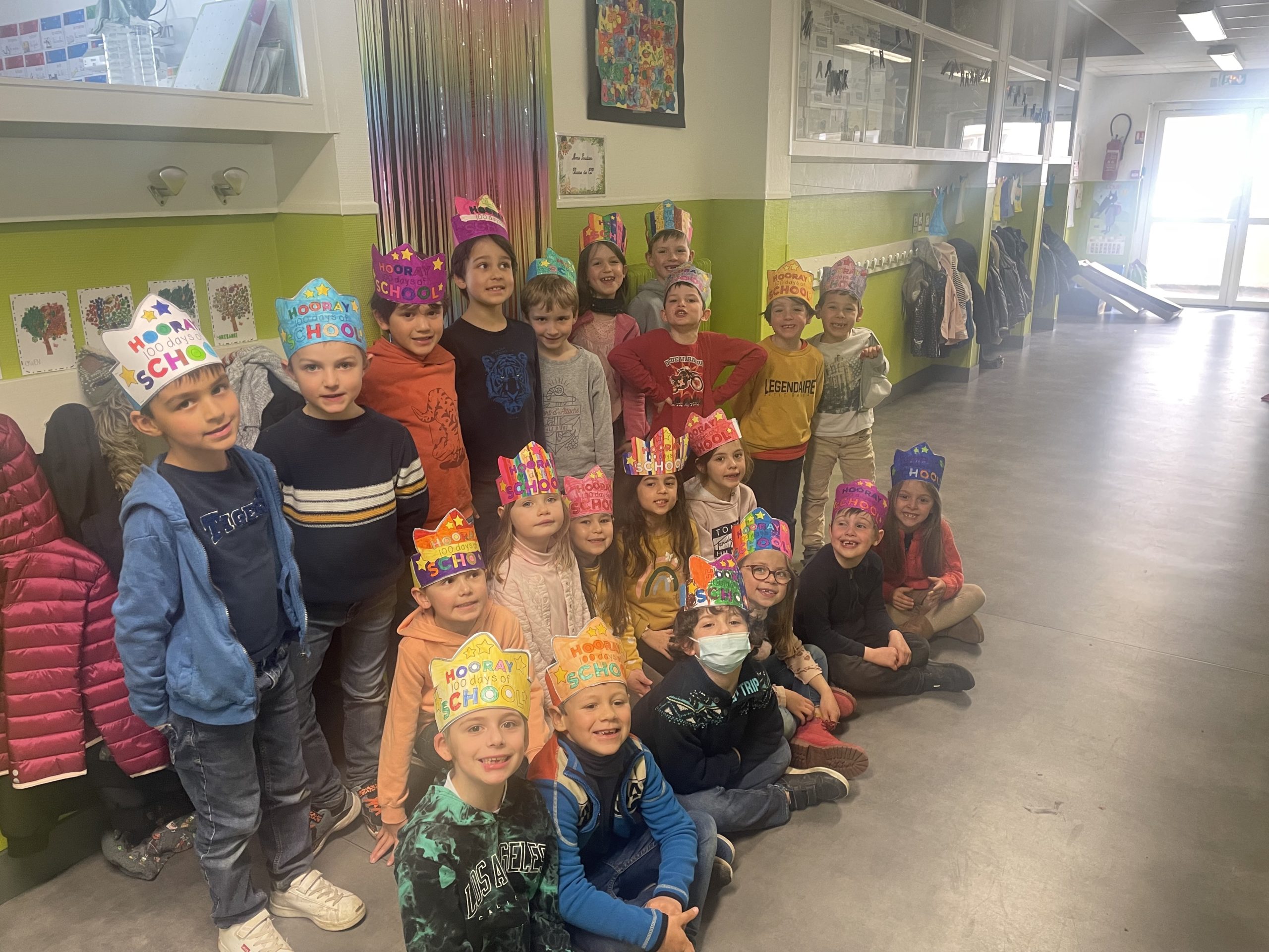 Jeudi 7 avril, la classe de CP a fêté ses 100 jours de classe, pour cela nous avons fait plusieurs activités :