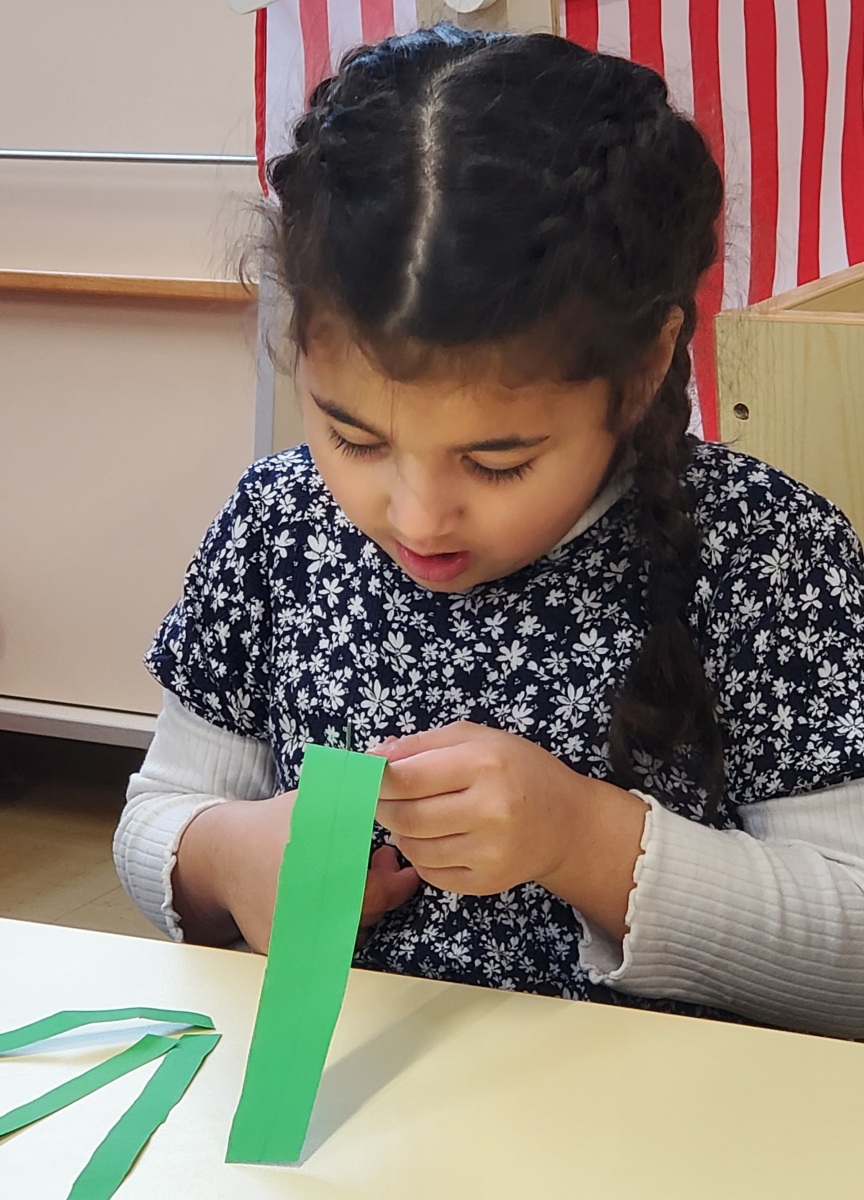 Les enfants de MS ont découpé des bandes de papier pour créer les tiges des fleurs.