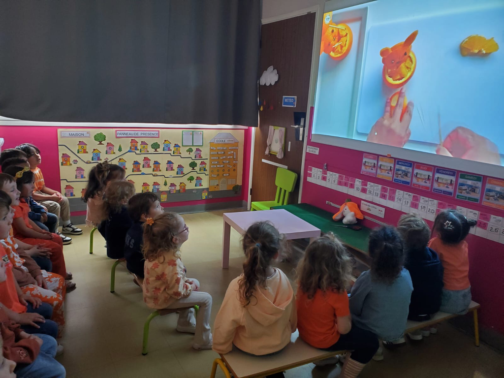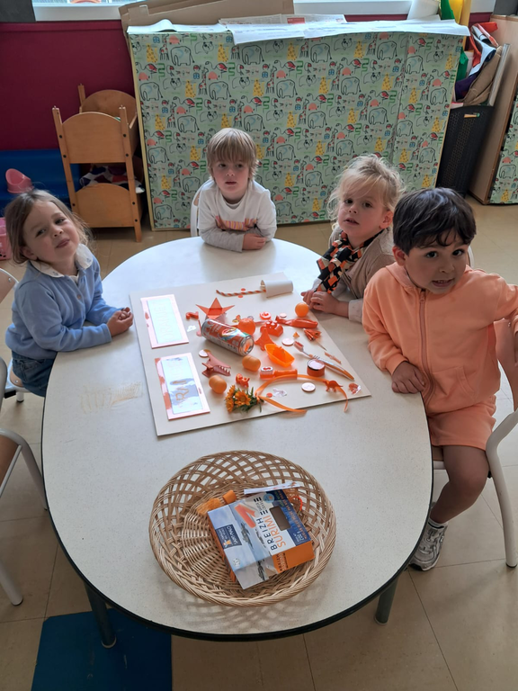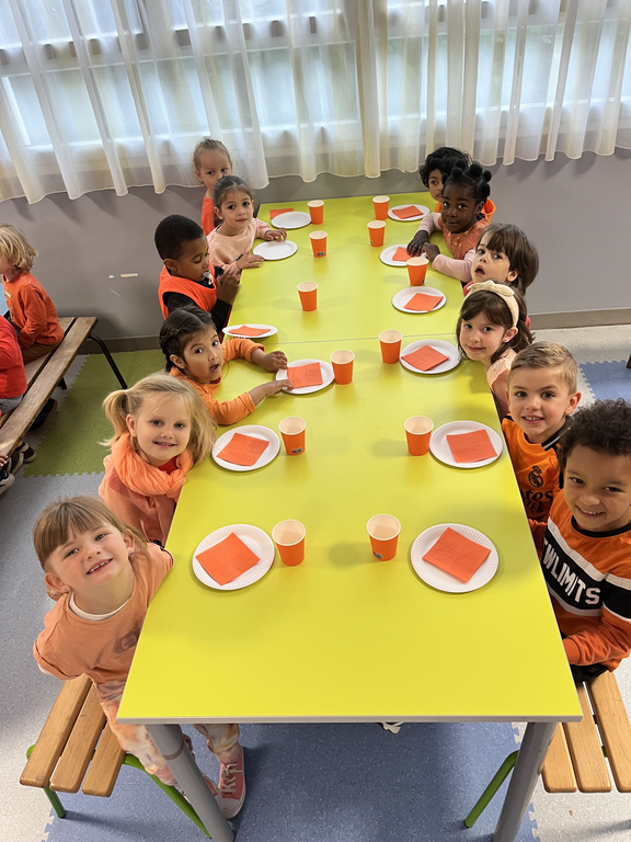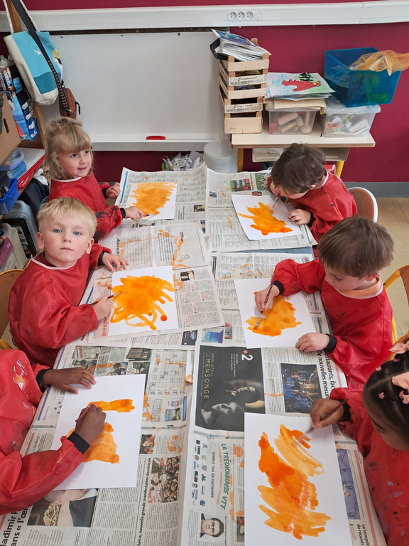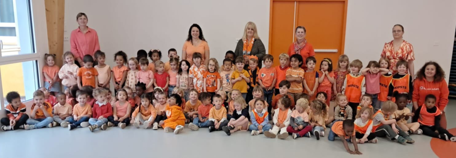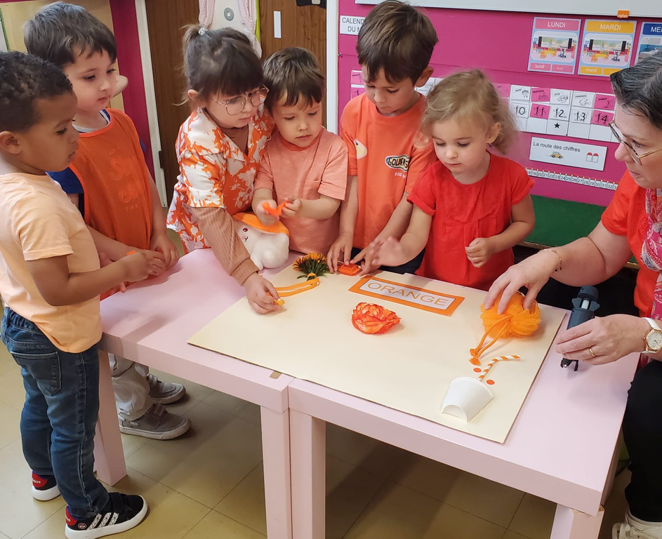 Jeudi dernier 5 juin, les élèves des classes de TPS-PS des classes de Mmes Kerisac, Danet et Guillaume se sont rassemblés pour célébrer la dernière journée d’un projet d’année sur les couleurs. Celle-ci portait sur le orange.