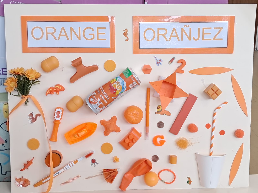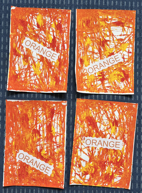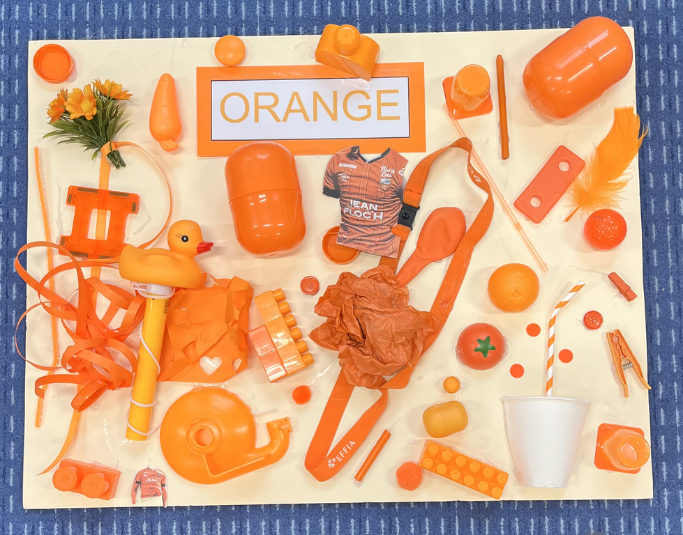 - réaliser des panneaux de couleur orange avec les objets rapportés de la maison