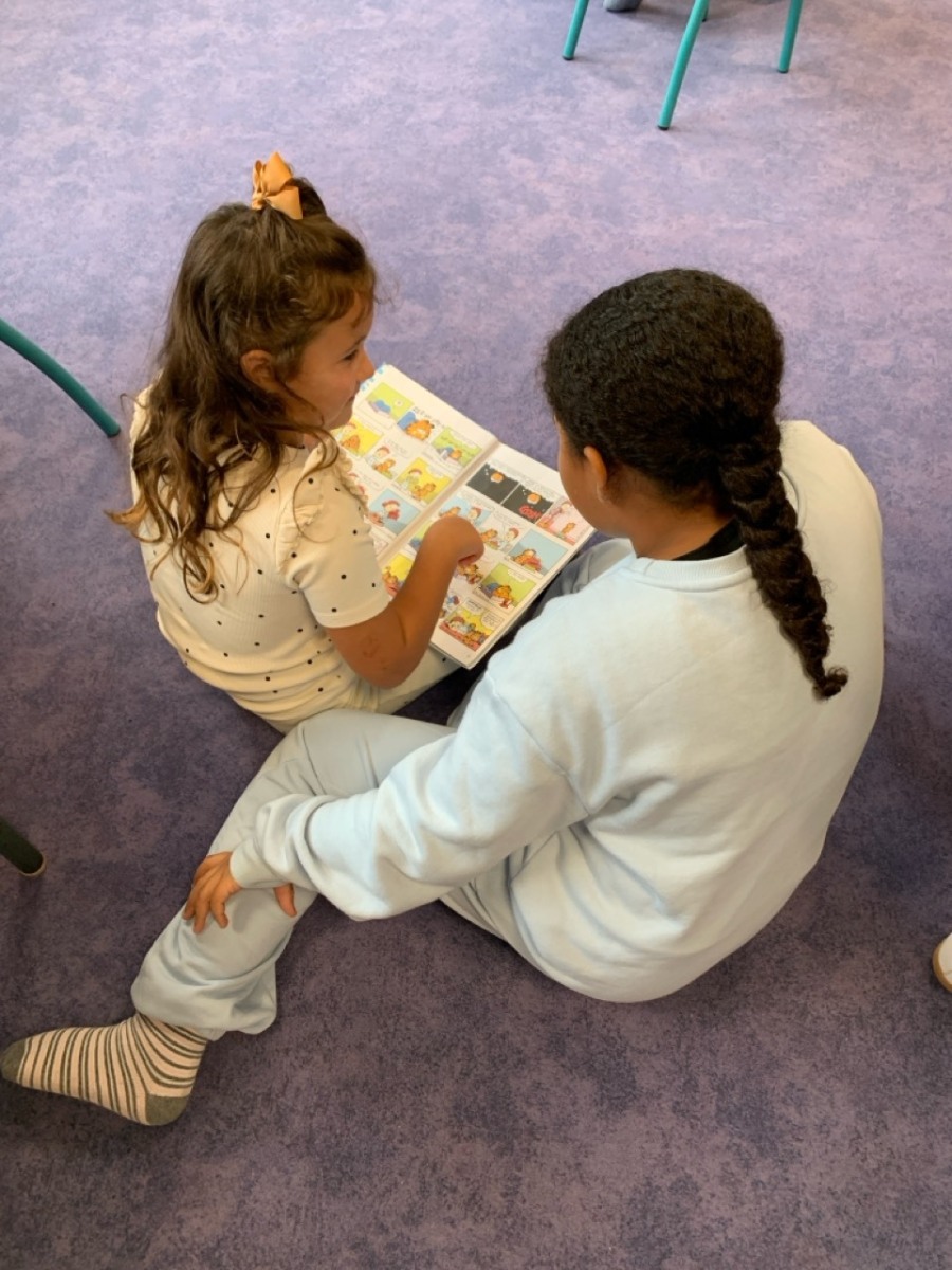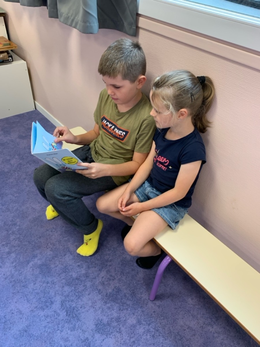 Vendredi 6 septembre a eu lieu la première rencontre entre les CP et CM2. Chaque CM2 est devenu le parrain/marraine d’un CP pour l’année scolaire.