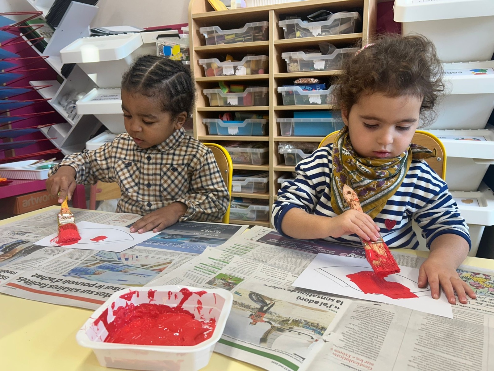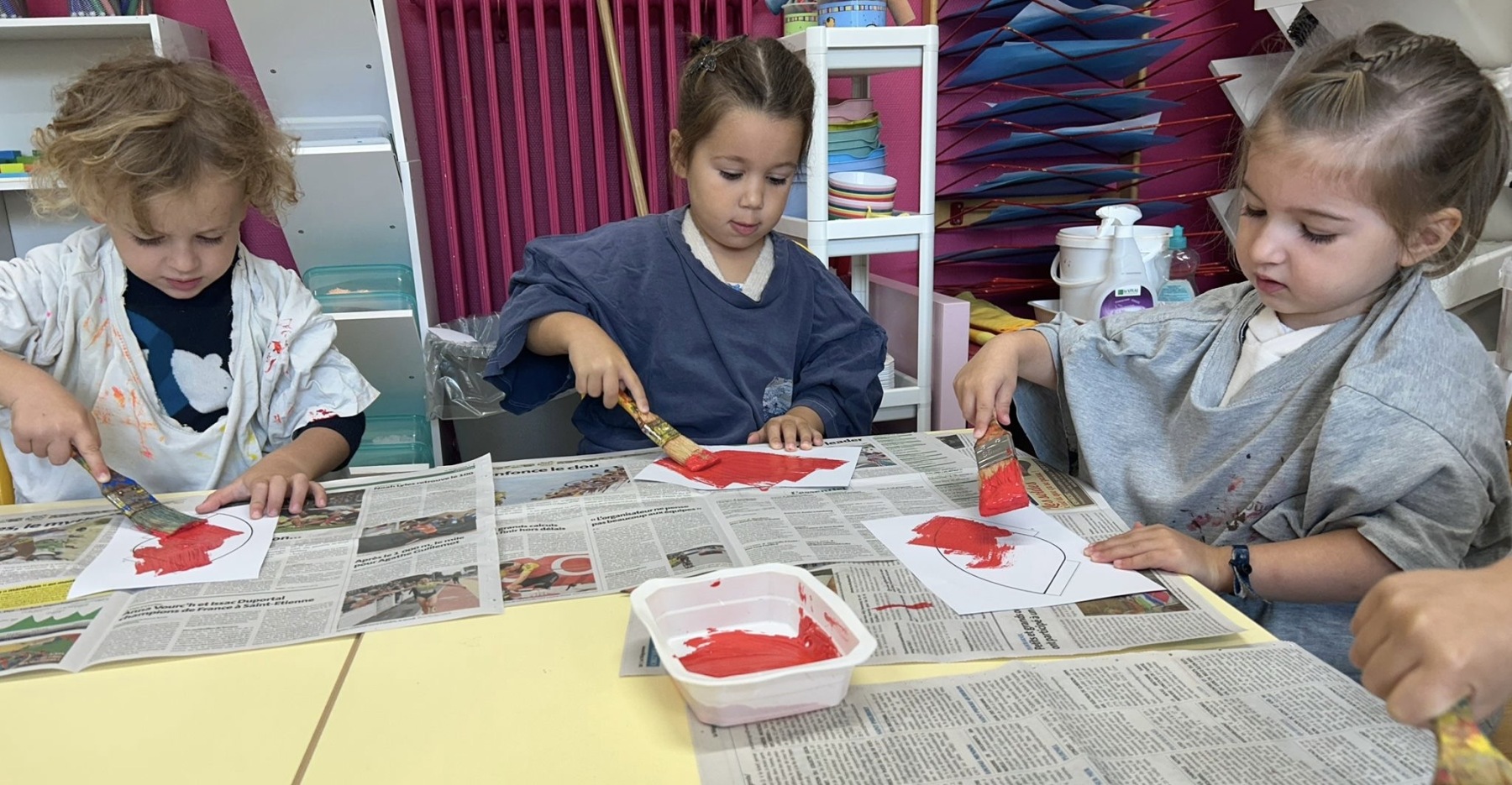 3. peindre des chapeaux de champignon et dessiner l’herbe avec leur doigt