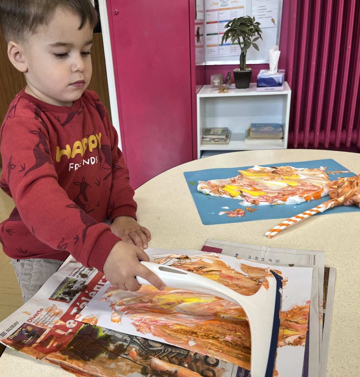Ils se sont aussi initiés à différentes techniques pour réaliser des beaux tableaux d’automne: