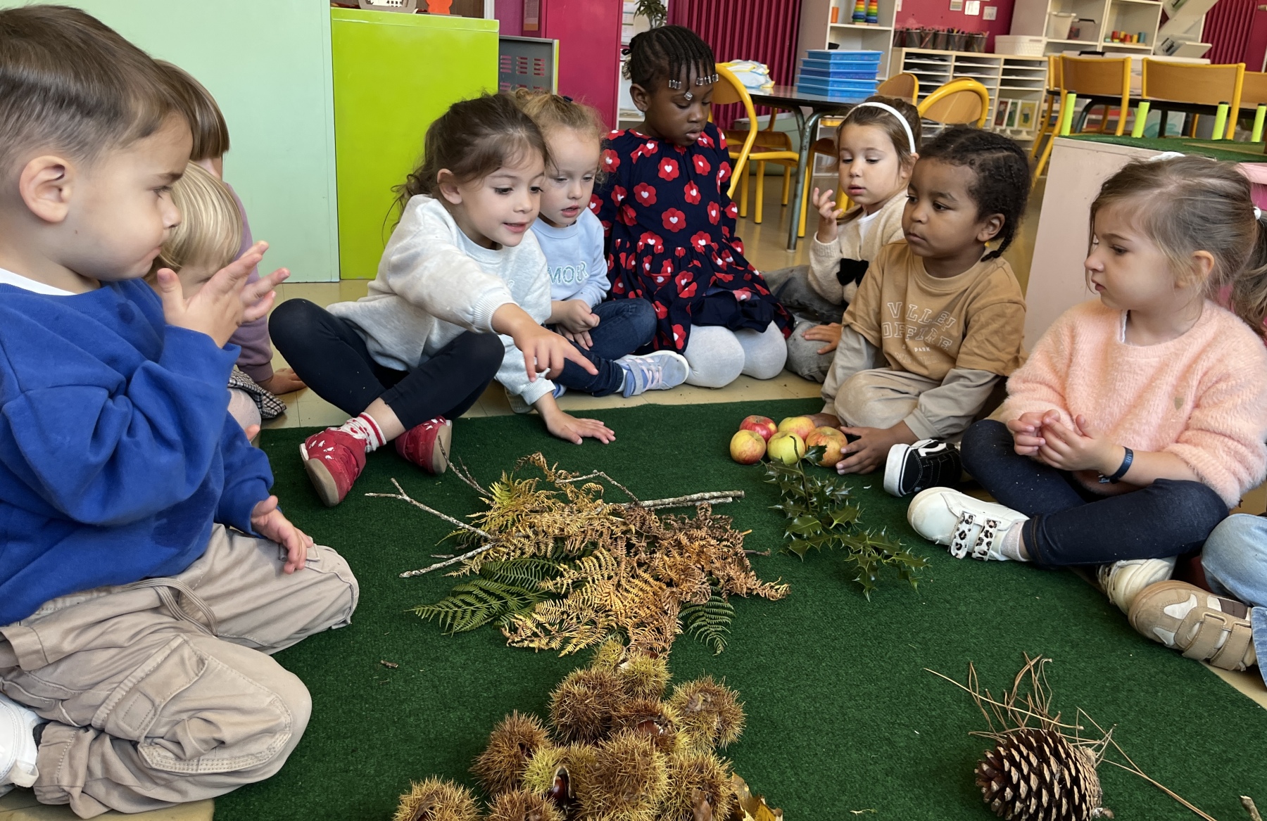 Durant cette première période, l’automne s’est invitée dans la classe de PS/MS de Mme KERISAC. Les enfants ont pu découvrir les éléments de la nature :
