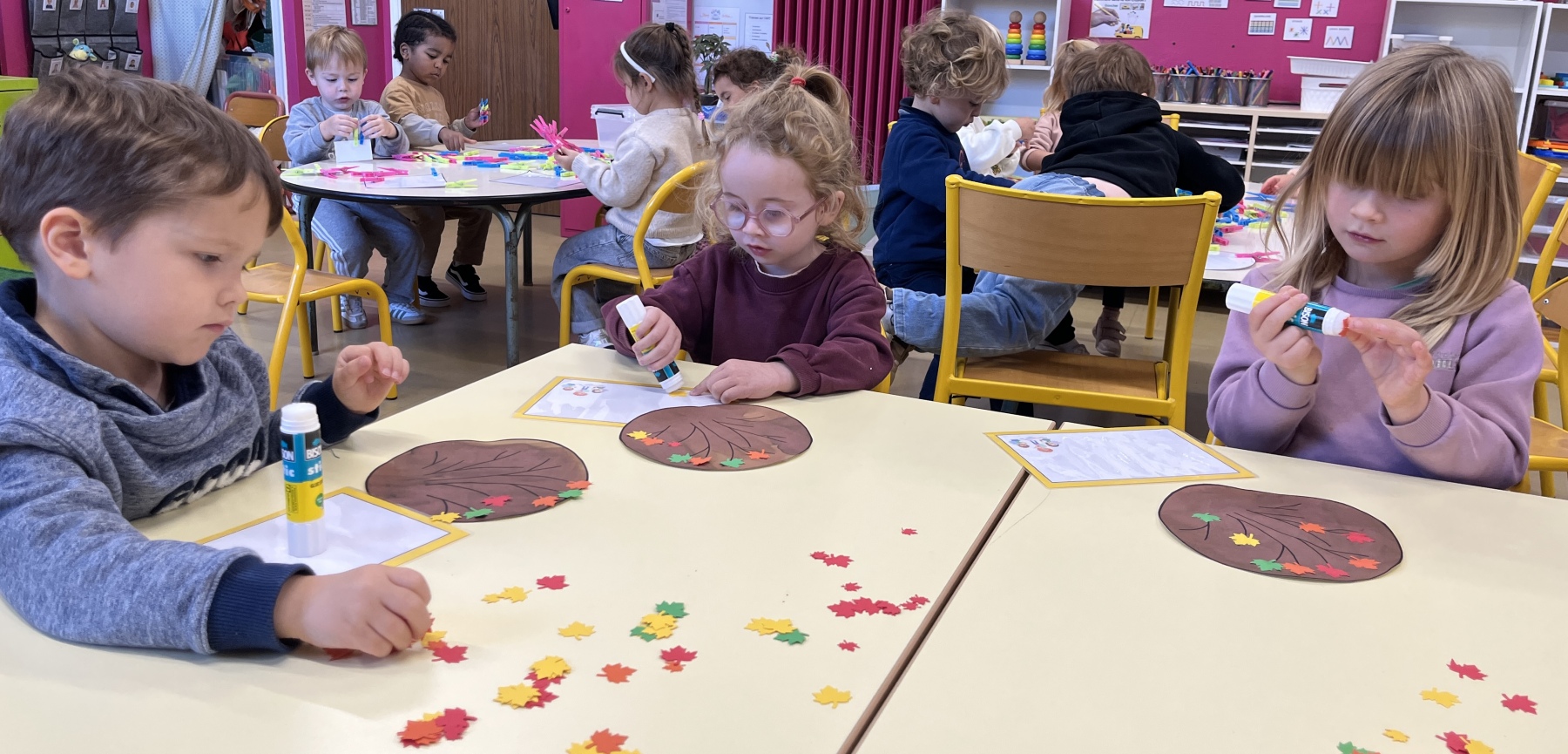 5. créer des feuilles d’arbre à l’aide d’un emporte-pièce et les coller sur leur arbre d’automne