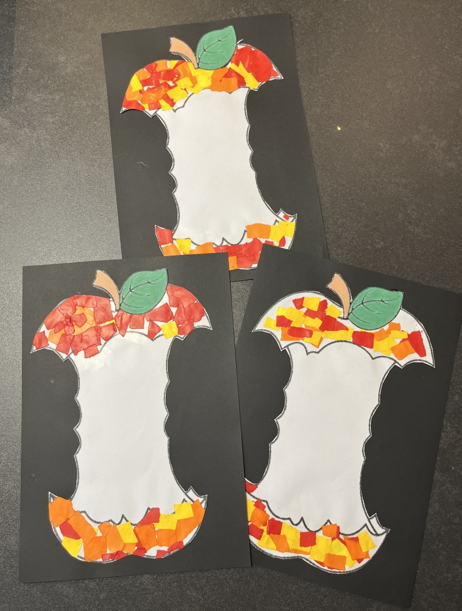 7. coller des morceaux de papier dans des pommes
