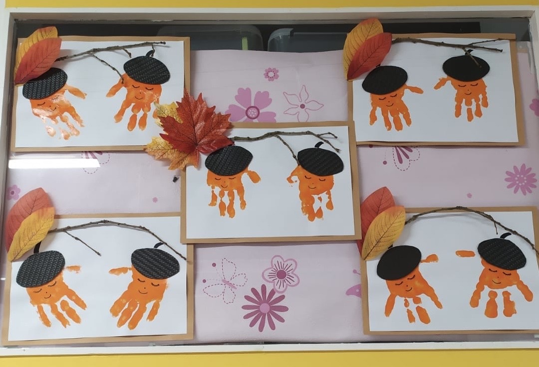 1. faire l’empreinte de leur main pour réaliser des glands