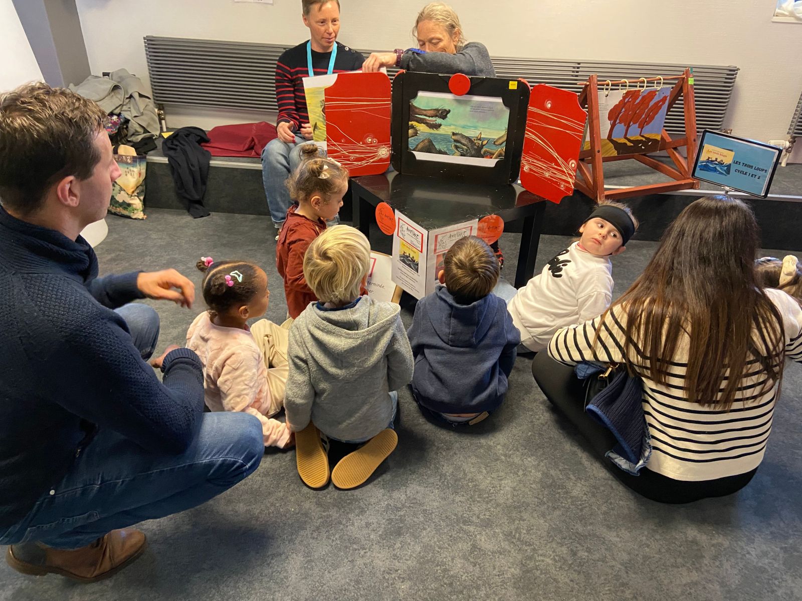 Au fil de la visite, les enfants ont pu découvrir et lire des albums de différentes manières : tapis de lecture, kamishibaï, lectures à plusieurs voix… Une variété de présentations qui a beaucoup retenu leur attention.