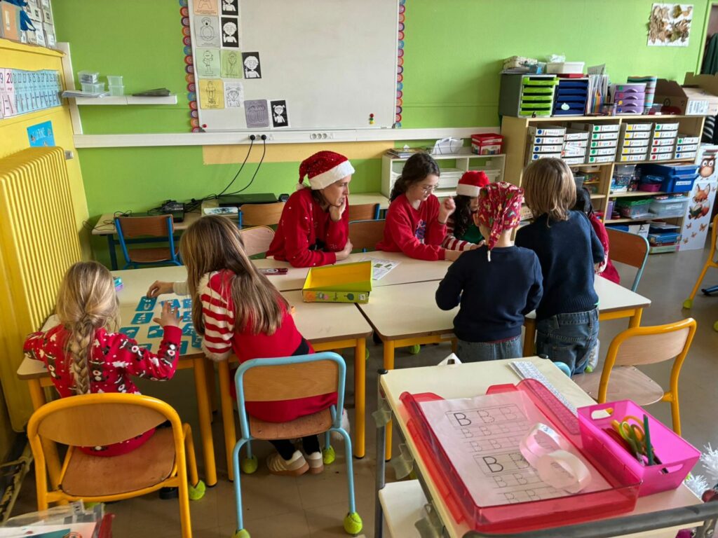 À l’occasion du dernier jour d’école avant les vacances de Noël, les élèves de GS et de CM1-CM2 se sont réunis pour partager un moment convivial et créatif autour d’ateliers de Noël.