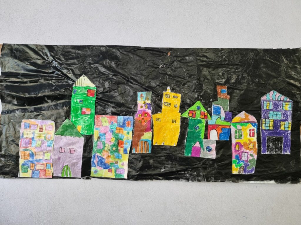 Création de fresques collectives : un architecte Hundertwasser, des monuments mondiaux les plus connus ou encore les différents sites de Lorient: peinture, coloriage, collage ont été nécessaires pour réaliser les œuvres.