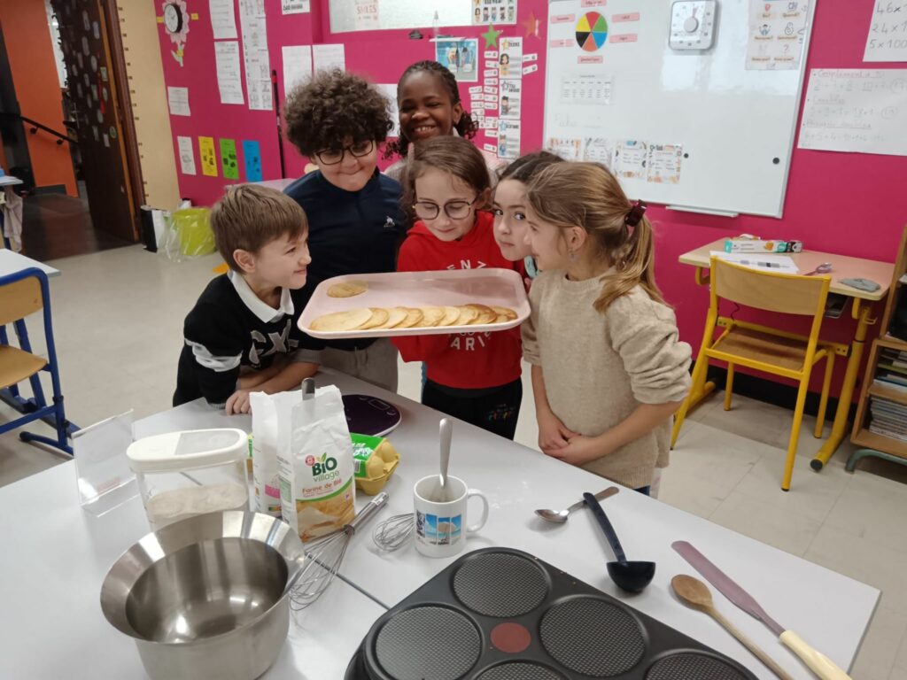 ️Cuisine au programme : des crêpes pour célébrer la chandeleur. Les élèves ont lu la recette, pesé les ingrédients, mélangé pour obtenir une belle pâte. Ensuite, il a fallu faire les crêpes, puis les retourner sans les faire tomber. Tous on pu déguster le fruit de leur travail.