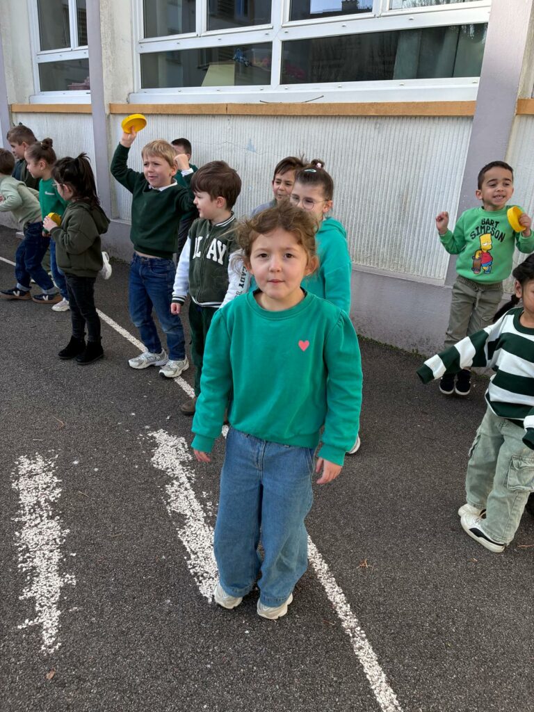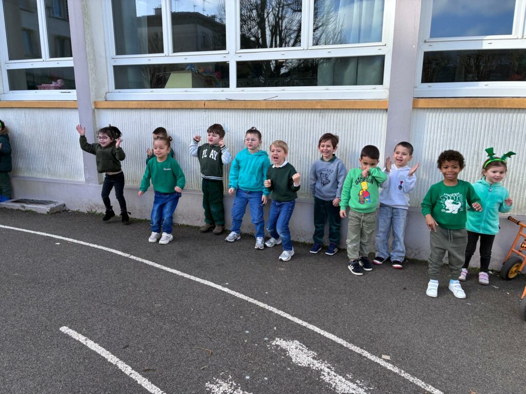 Des enfants vĂŞtus de vert, pour le plus grand plaisir de tous. Merci aux parents venus accompagner les groupes.