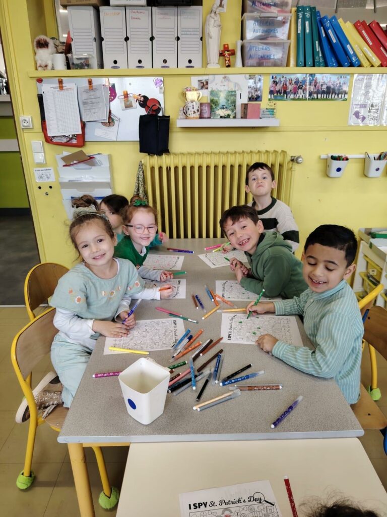 À l’occasion de la Saint-Patrick, les classes de maternelle ont vécu une matinée d’ateliers autour de cette fête.