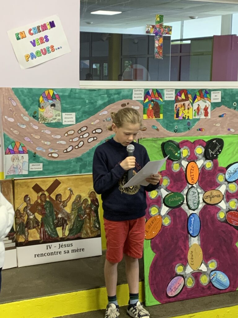Le temps du Carême a été un beau chemin vécu ensemble au sein de l’école, fait de partage, de solidarité et de prières, notamment chaque semaine où nous complétions notre chemin de Carême.