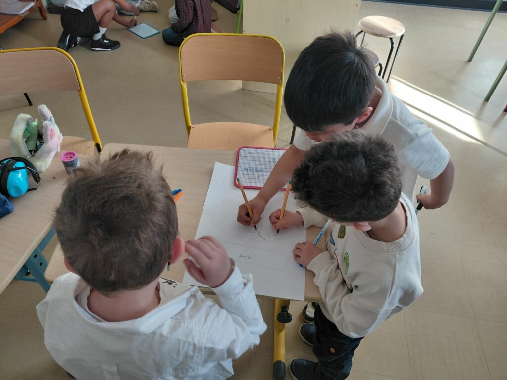 Le matin, les trois classes ont participé à des défis mathématiques. Des groupes ont également relevé des challenges : trouver 100 noms de villes, 100 noms d’animaux et 100 mots en langue étrangère.