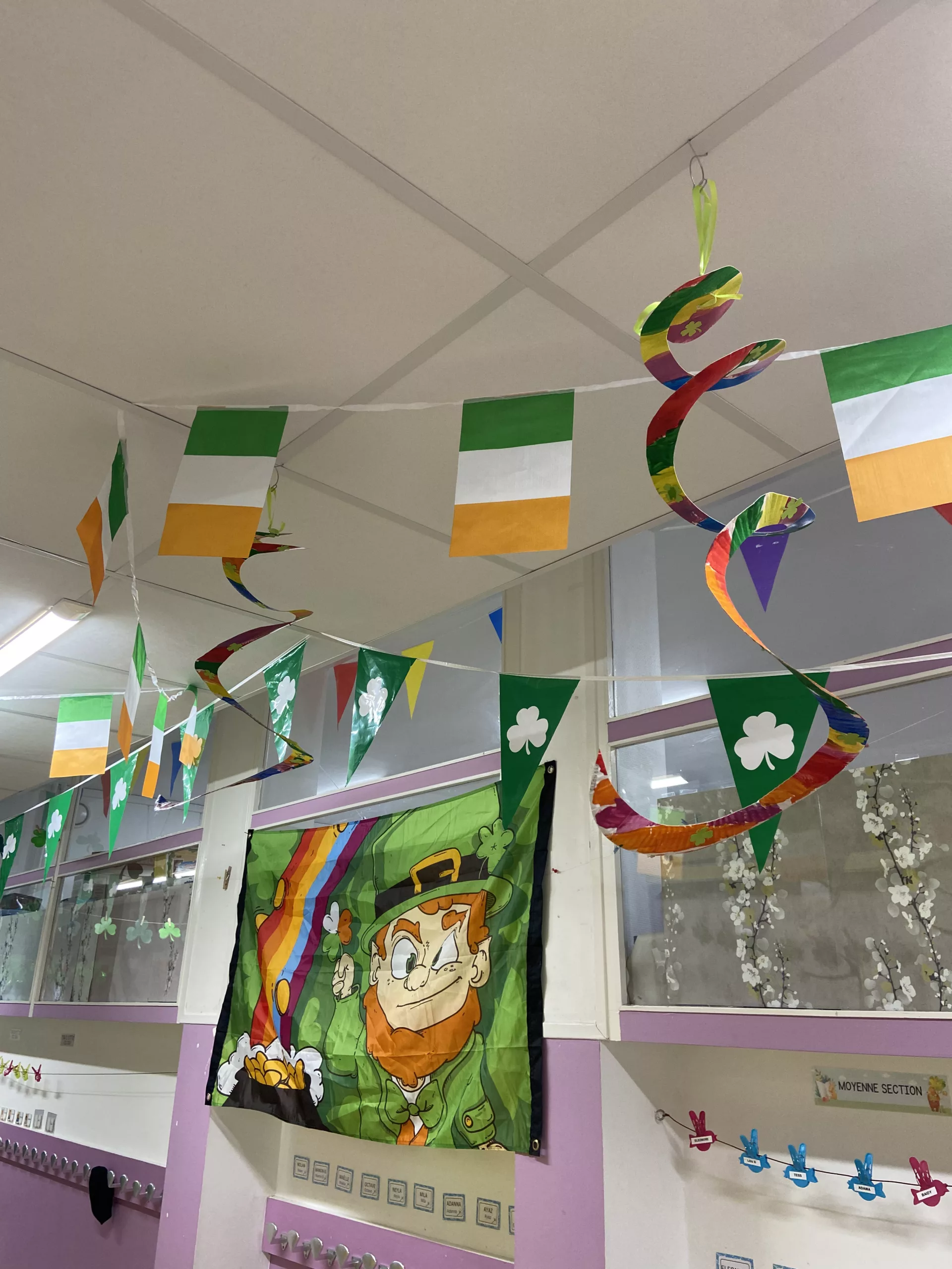 Ce lundi 18 mars, les classes de maternelle ont fêté la Saint-Patrick avec enthousiasme et bonne humeur ! Tout au
