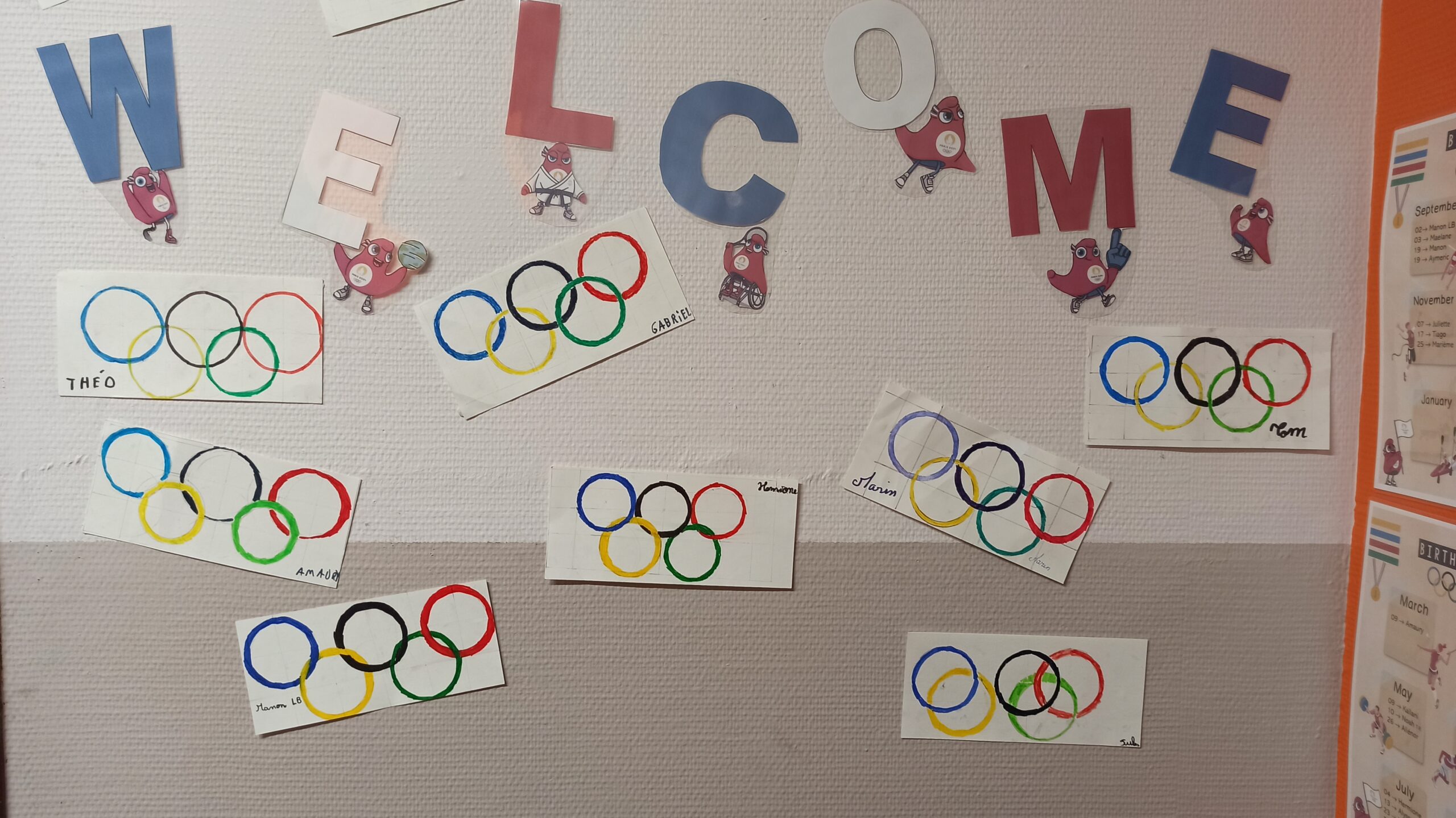 En CM1-CM2, dans le cadre de notre projet sur les Jeux Olympiques et Paralympiques, nous avons réalisé les anneaux olympiques