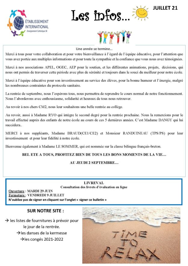 Les informations du moi de Mai à l’école Ste Marie