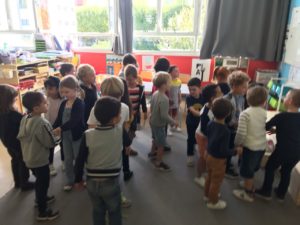 Retour en images sur les premières semaines en grande section : jour de rentrée , découverte de la classe et des copains , première séance d’anglais , bénédiction des cartables etc..
