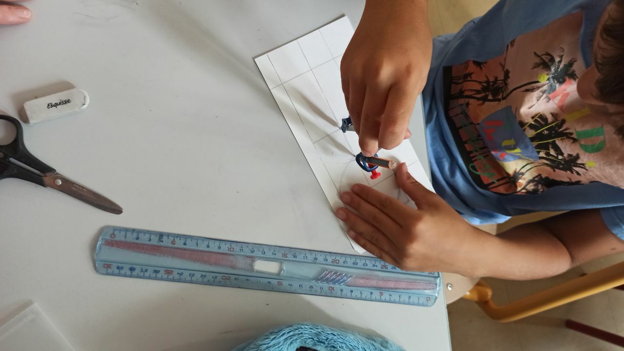 L’objectif ici était d’utiliser les instruments géométriques à des fins artistiques. Plus les tracés sont précis et plus ces derniers respectent les mesures, plus les anneaux sont correctement positionnés.